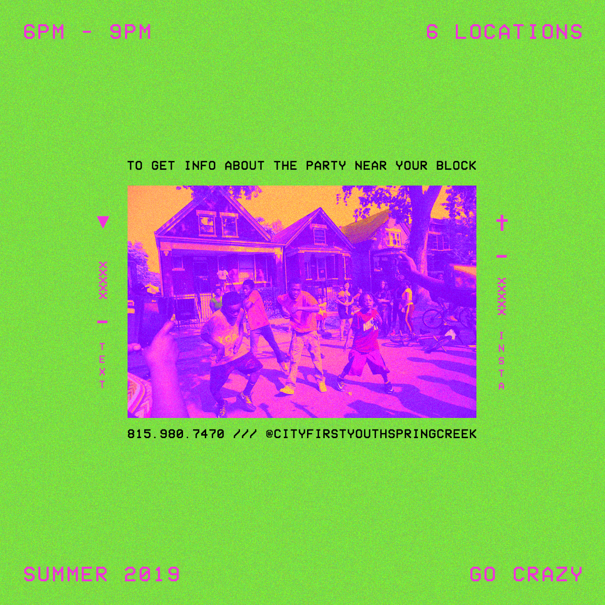 For this project, City First Youth wanted a bright, colorful graphic to advertise their Block Party event on social media. The client requested that I use the specific photo in the final design, so I used that as starting point. Since the image was lower resolution, I decided to center the image in the design and make it as large as I could to compensate. Next I began to layout the details of the event and decided to use the corners of the design to communicate the time and amount of locations. I then decided to use the edges of the image to communicate how to contact them through instagram and text message. When it came to colors, I placed a pink and orange gradient map over the block party image to make it more vibrant. Finally, I used lime green as the background to compliment the warmer pink and orange in the image and pulled pink from the image to use for the color of the text. I also added some noise to the entire image to break up the solid color background and add some texture.