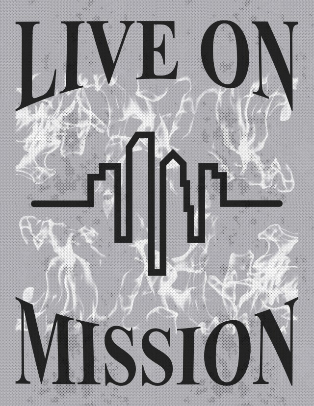This re-purposed concept was initially created for a crewneck sweatshirt to be sold as merchandise for the youth department as a part of their rebrand. The new church logo is featured front and center, with the “Live on mission” phrase grounding the top and bottom of the design. I drew inspiration from vintage sports graphics and used Illustrator to create the curved effect on the top and bottom of the phrase. Also by utilizing blending modes in Photoshop, I created the flame texture that fills out the design.